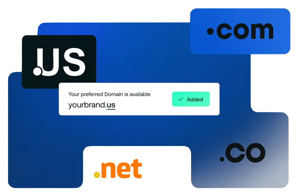 Explore hundreds of domain extensions, from iconic .com names to eye-catching options that highlight your originality.